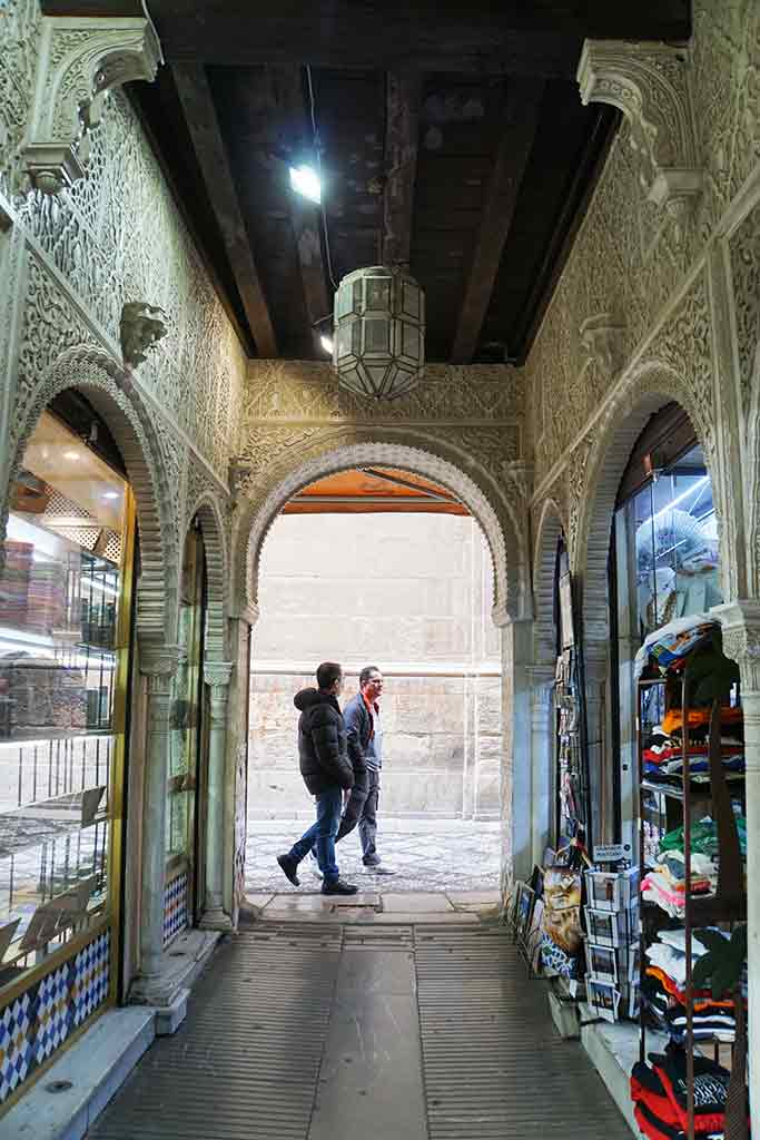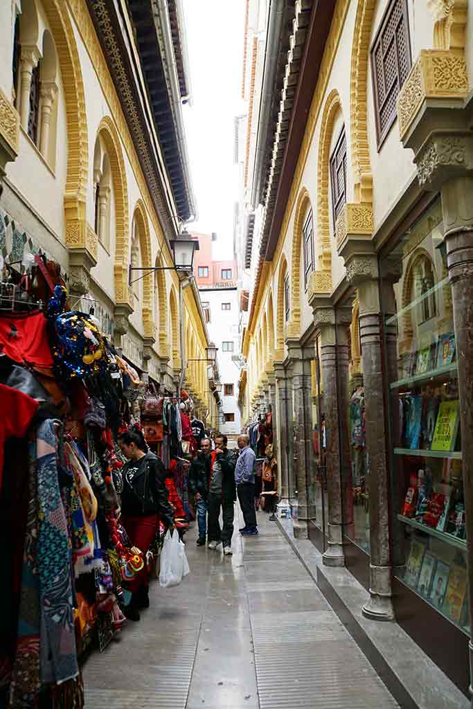 The Alcaiceria is a maze of narrow alleyways with a distinctly Moorish feel. It was formerly the Moorish silk market or the Grand Bazaar, but today has only one remaining street that runs from Calle Reyes Catolicos to the Cathedral.