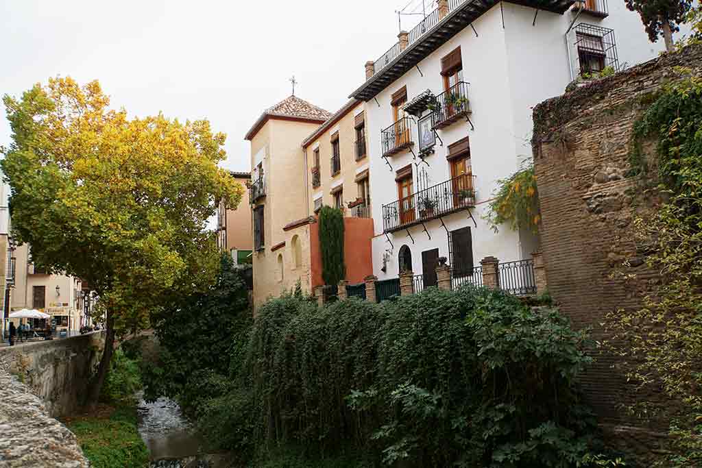 The Carrera del Darro is the name given to the entire left bank of the river Darro, which runs through Granada. The cobblestoned street runs along the river, between the Alhambra forest and the hills of the Almanzora, and is one of the most picturesque spots in the city.