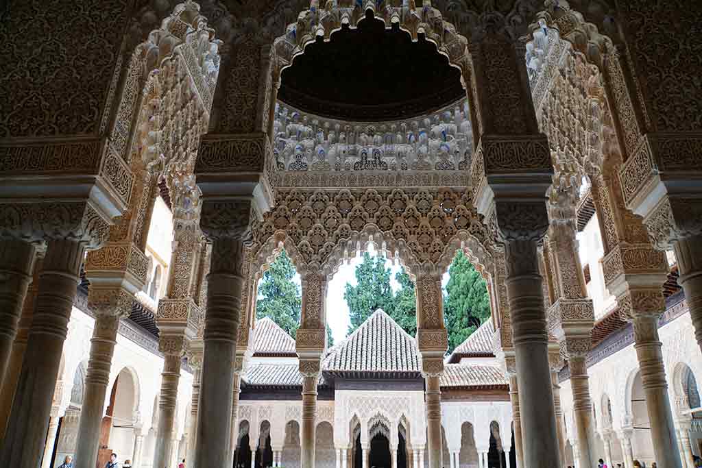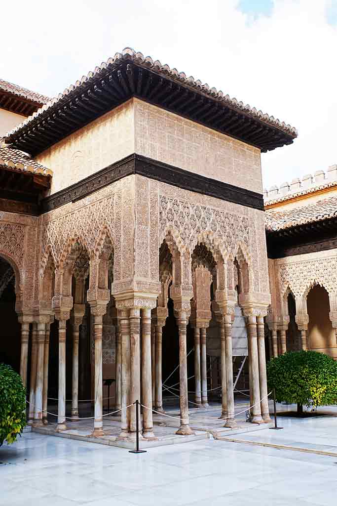 The Court of the Lions may be among the most popular stops in the palace. It is known for its marble fountain where twelve lions jet streams of crystal clear water, its surrounding exemplary Moorish arcade, and beautiful marble floor.