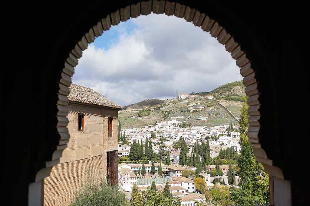 The palace complex sits atop a strategic hill overlooking the Darro River and the city of Granada, with the Albaicin and Sacromonte on opposite hills. The Alcazaba, or military fortress, already existed in this place by the time the Muslims came, and it was here that they stayed until the Nasrid king Mohammed I established royal residence at the Alhambra.