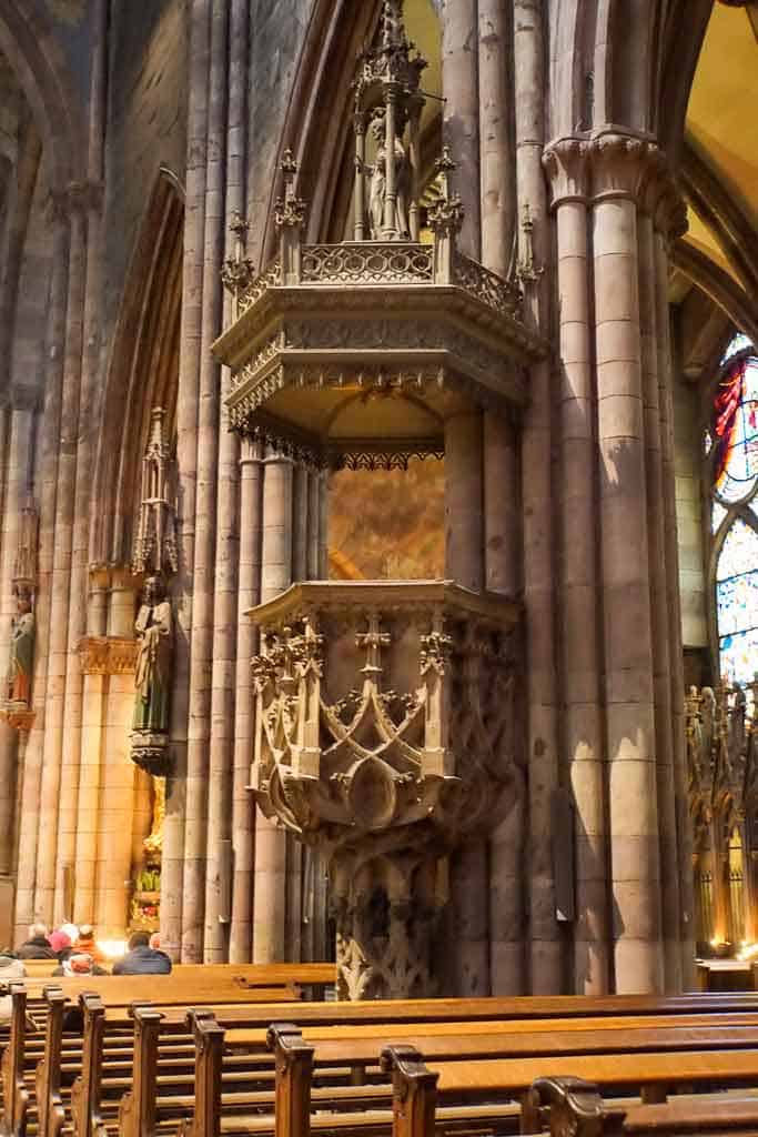 The Freiburg Minister sits in the middle of the city’s main square, the Münsterplatz. This cobbled square is a pedestrian only zone and is steeped in history. The majority of the square was leveled in 1944 by the bombings of WWII. The Minister survived the bombings along with the Wentzingerhaus, a Baroque mansion built by Johann Christian Wentzinger in 1761.