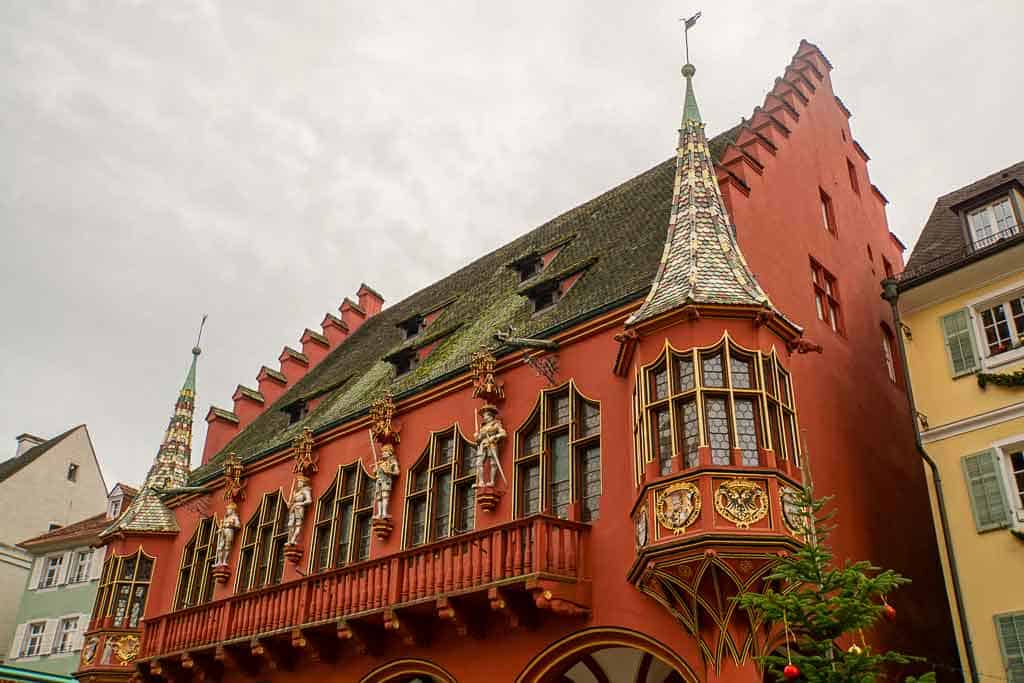 The Rathausplatz is Freiburg’s prettiest square. What you’ve really come to this square to see is not one, but two town halls! Frieburg has an Old Town Hall and a New Town Hall. The Altes Rathaus or Old Town Hall, built in the Renaissance style and bright oxblood-red was constructed in the 16th century.