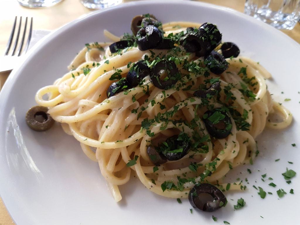 Typical Roman pasta comes from a shepherd tradition. The simplest is “Gricia” dressed with cured pork cheeks, black pepper, and grated Pecorino cheese. If you add tomatoes and dried chili pepper to it, you will get an “Amatriciana”. “Cacio e Pepe” is dressed with grated Pecorino Romano cheese and black pepper. The most consistent one is Carbonara, made with bacon, raw eggs, grated Pecorino, and Parmesan cheese. The ingredients are very simple, so its creamy taste praised by both locals and tourists depends on the quality of the ingredients and on the making process. The secret is to put some pasta cooking water on it to form a creamy sauce.